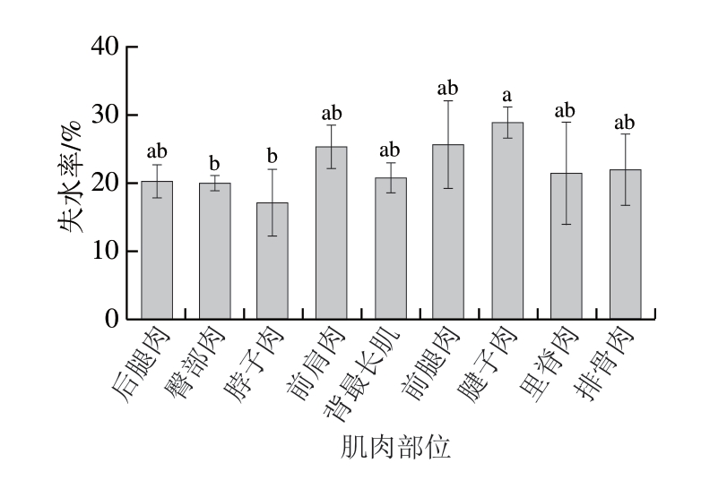 Fig.3 Water-holding capacities of different meat cuts from bactrian camels