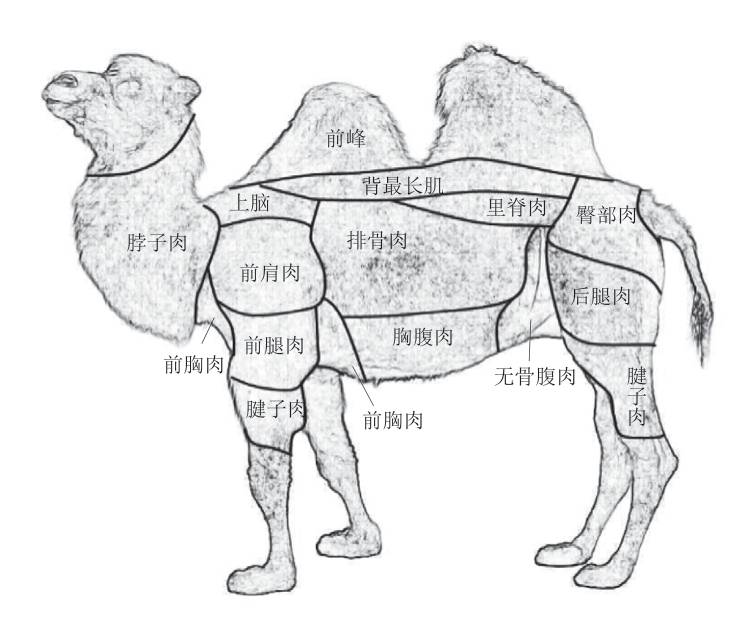 中国是世界上双峰驼的主要产地之一,新疆约占全国双峰驼总数的一半,主要分布于新疆准噶尔盆地、塔里木盆地边缘以及天山南北坡的荒漠草场地带。骆驼具有独特的生存和繁殖能力,在应对高温、干旱缺水和食物稀缺等极端环境条件时有很强的耐受性[1]。因此,在干旱、半干旱等动物生产效率较低的地区,骆驼是一种良好的肉类来源[2]。随着人口的增长,人们对肉类和肉制品需求增加,迫切需要寻找未充分利用的红肉资源,而骆驼肉恰好是适宜且易获取的选择之一[3]。尽管骆驼肉在世界红肉市场的占有率较低,但其生产和消费增长速度快于牛肉和羊肉,在饲养骆驼的干旱国家其消费量可占红肉消费总量的2.5%,在海湾国家占比可达30%,在西撒哈拉等地区占比甚至高达66%[4]。