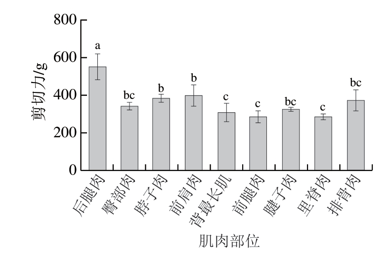 小写字母不同,表示不同部位肉间差异显著(P<0.05)。图3~5同。