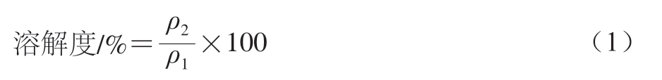 参考Dai Hongjie等[13]的方法。用磷酸盐缓冲液制备稀释样品,分散均匀后,用双缩脲法测定蛋白质量浓度(ρ1/(mg/mL)),然后在4 100×g、4 ℃下离心15 min,取上清液测定蛋白质量浓度(ρ2/(mg/mL))。溶解度按式(1)计算: