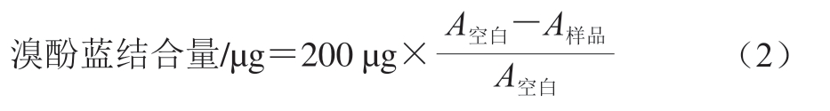 式中:A样品、A空白分别为样品组上清液和空白组上清液在595 nm处的吸光度。