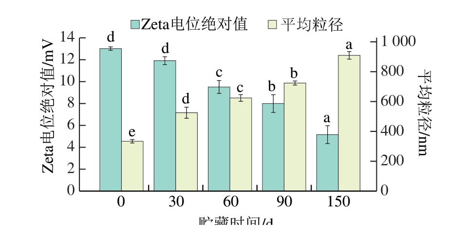 图5 骆驼肉MP Zeta电位和平均粒径在冷冻贮藏期间的变化