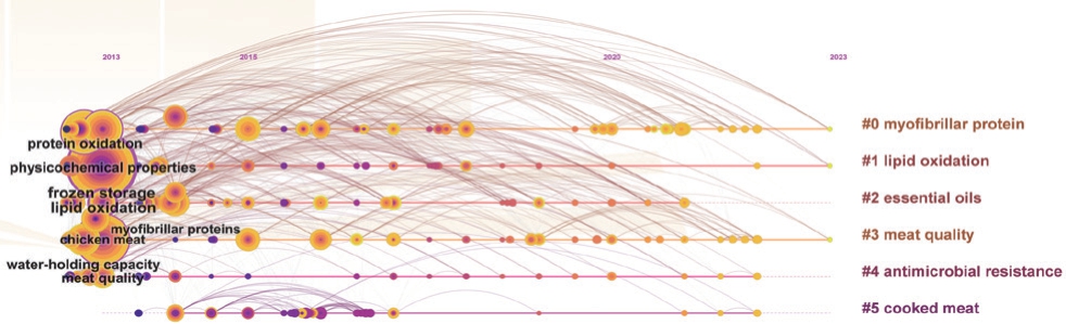 图11 WOS数据库冻藏肉制品研究关键词时间线图