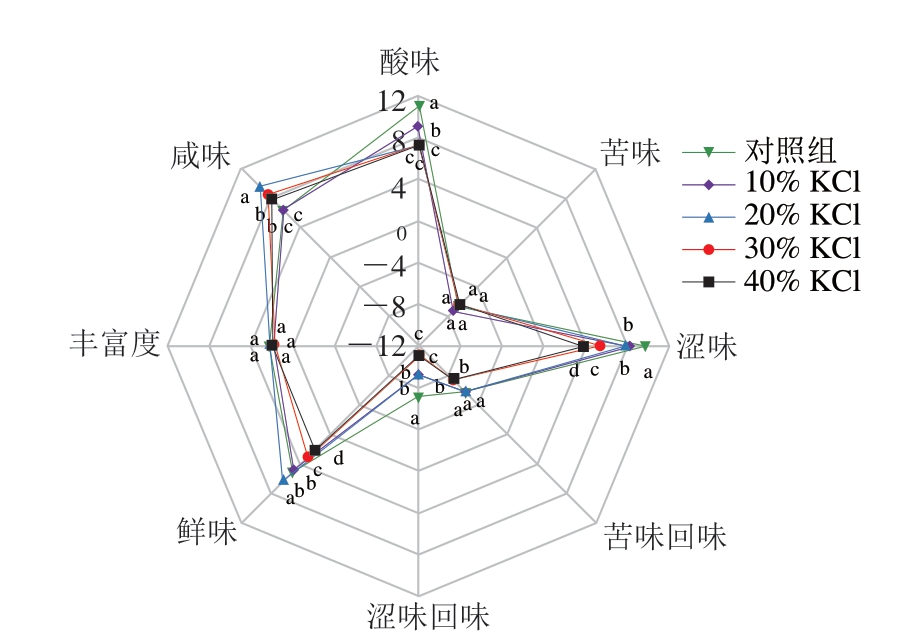 图1 KCl部分替代NaCl对酸肉电子舌响应值的影响