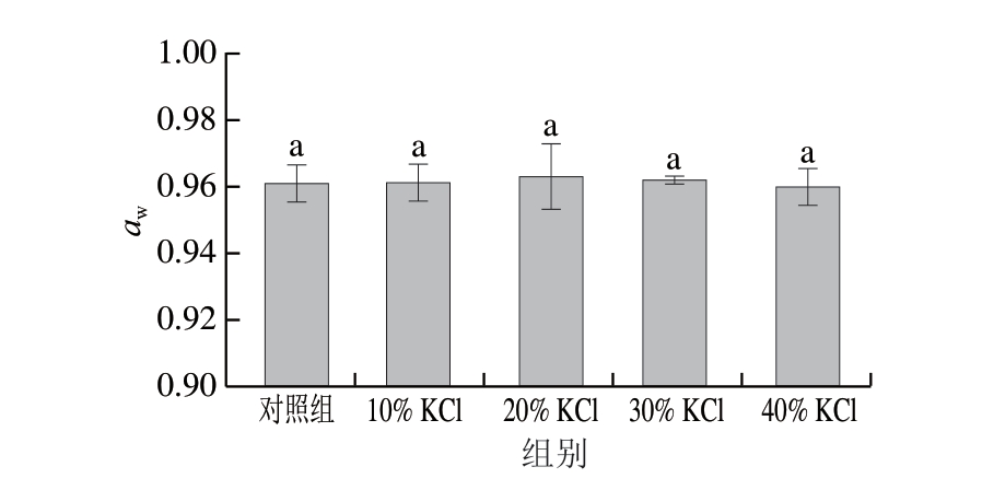 图5 KCl部分替代NaCl对酸肉aw的影响