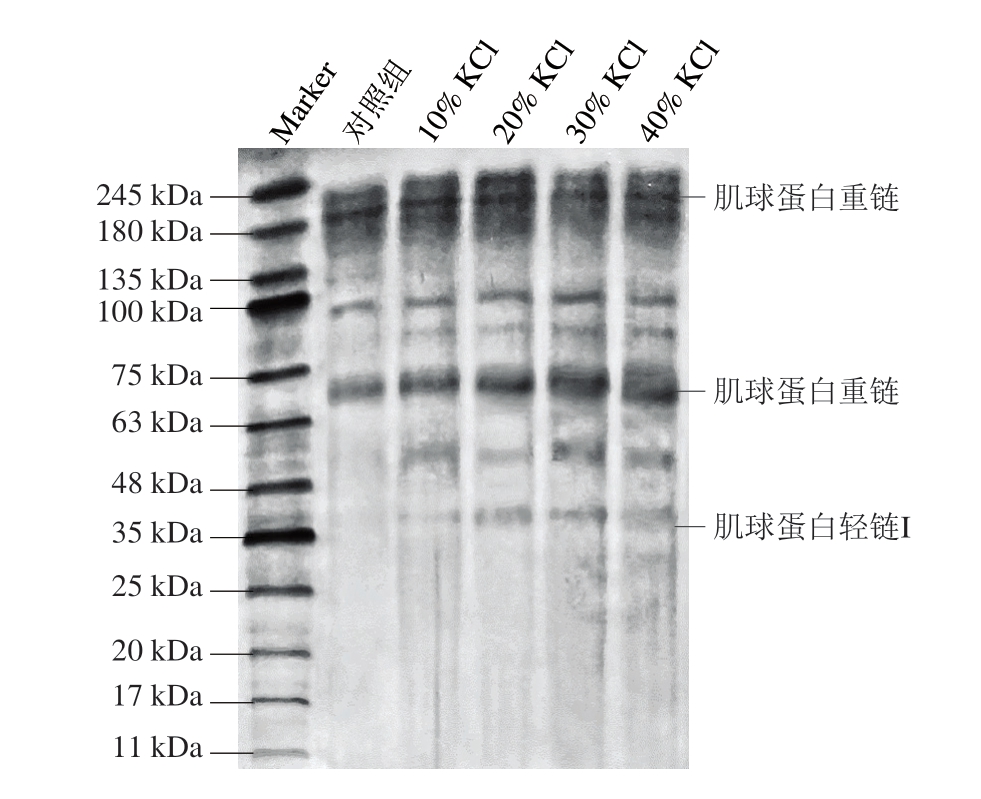 图7 KCl部分替代NaCl对酸肉SDS-PAGE图谱的影响