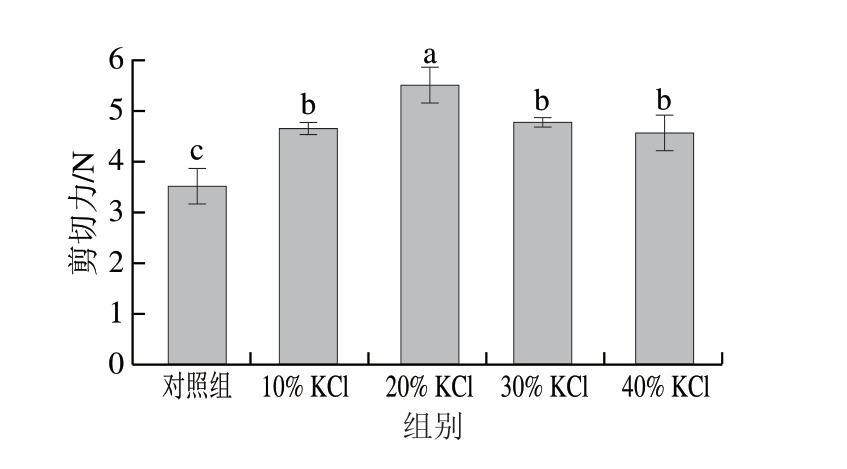 图3 KCl部分替代NaCl对酸肉剪切力的影响