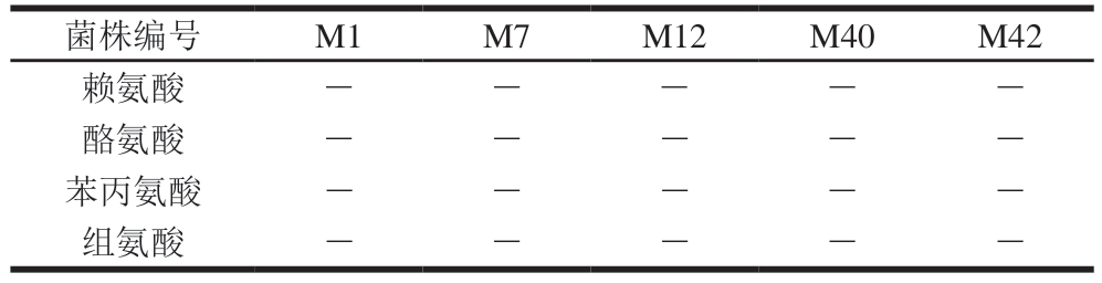 表5 菌株M1、M7、M12、M40和M42产生物胺实验结果