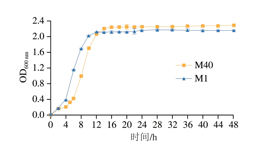 图2 菌株M1与M40的生长曲线