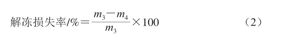 式中:m3为冷冻鱼片质量/g;m4为解冻后鱼片质量/g。