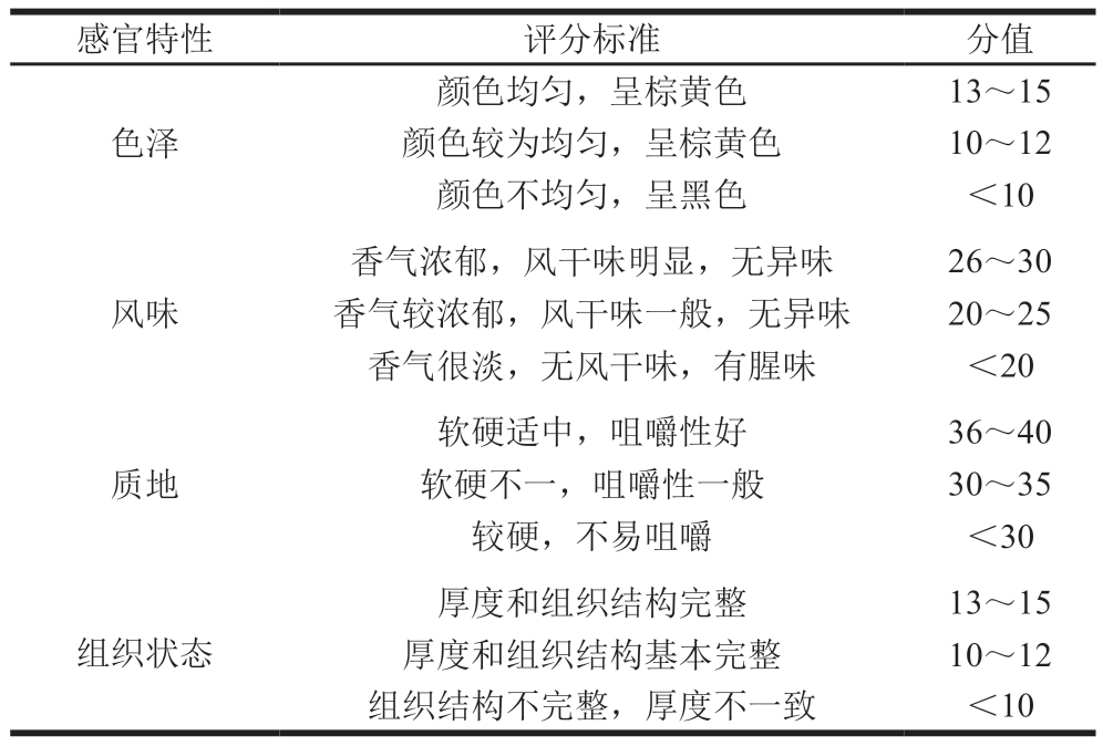 Table 1 Sensory evaluation criteria for beef jerky