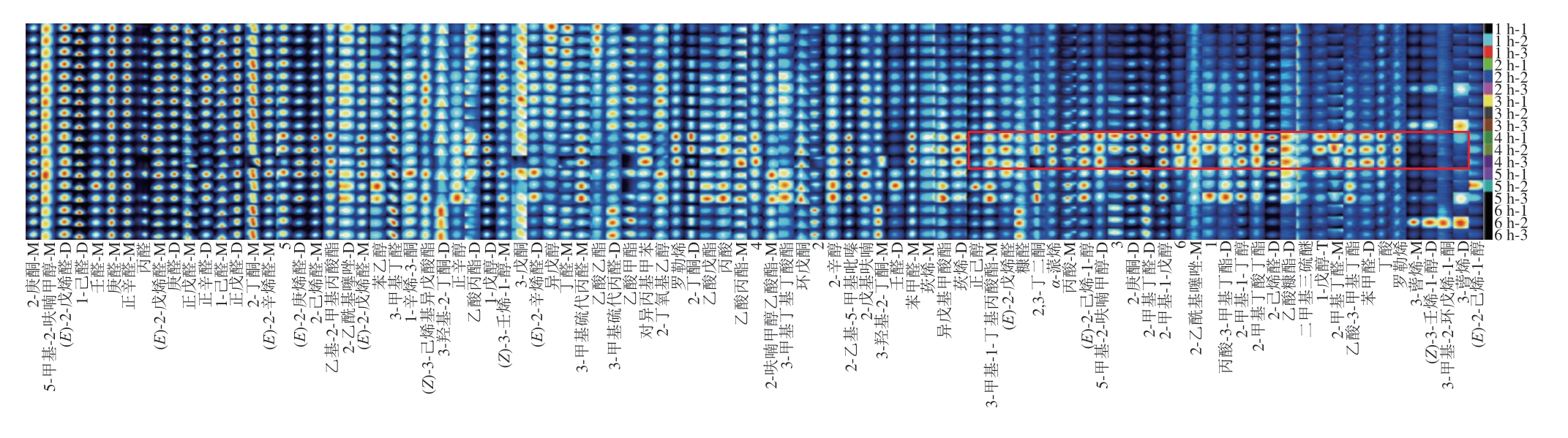 Fig.10 GC-IMS fingerprint of chicken soup with different stewing times