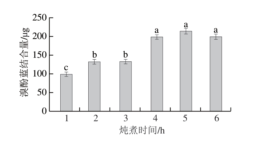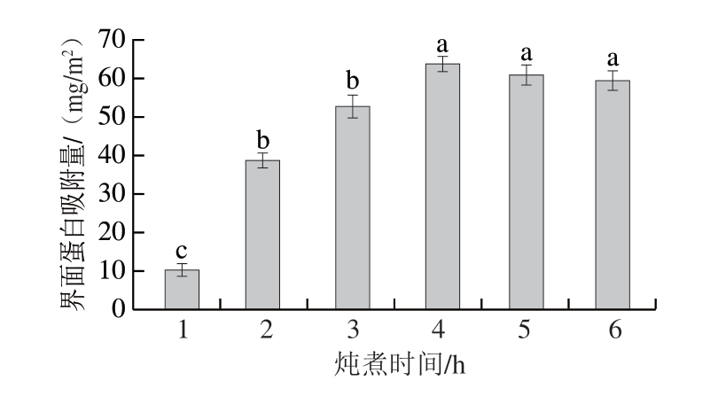 图5 不同炖煮时间下鸡汤界面蛋白吸附量变化