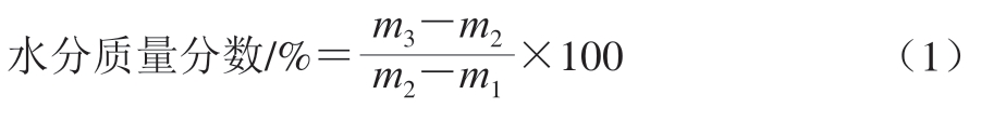 式中:m1为玻璃瓶质量/g;m2为烘干前玻璃瓶和鸡肉肠总质量/g;m3为烘干后玻璃瓶和鸡肉肠总质量/g。