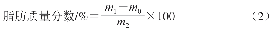 式中:m1为抽提前抽提筒总质量/g;m0为抽提后抽提筒质量/g;m2为鸡肉肠质量/g。