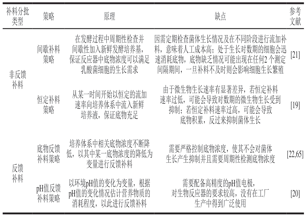 表3 常见乳酸菌补料分批培养策略