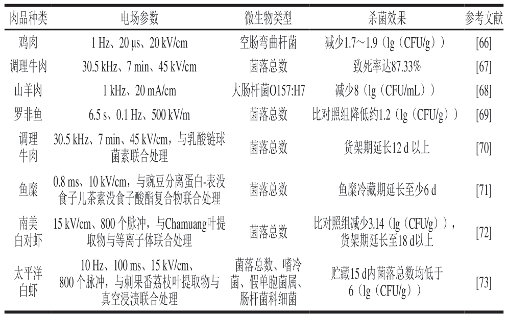 Table 4 Bactericidal effect of pulsed electric field in different meat
