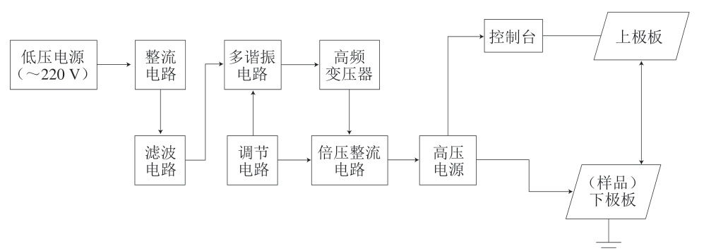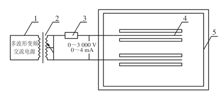 1.多波形变频交流电源;2.高频变比可调变压器;3.安全电阻;4.电场发生装置极板;5.电场发生装置。