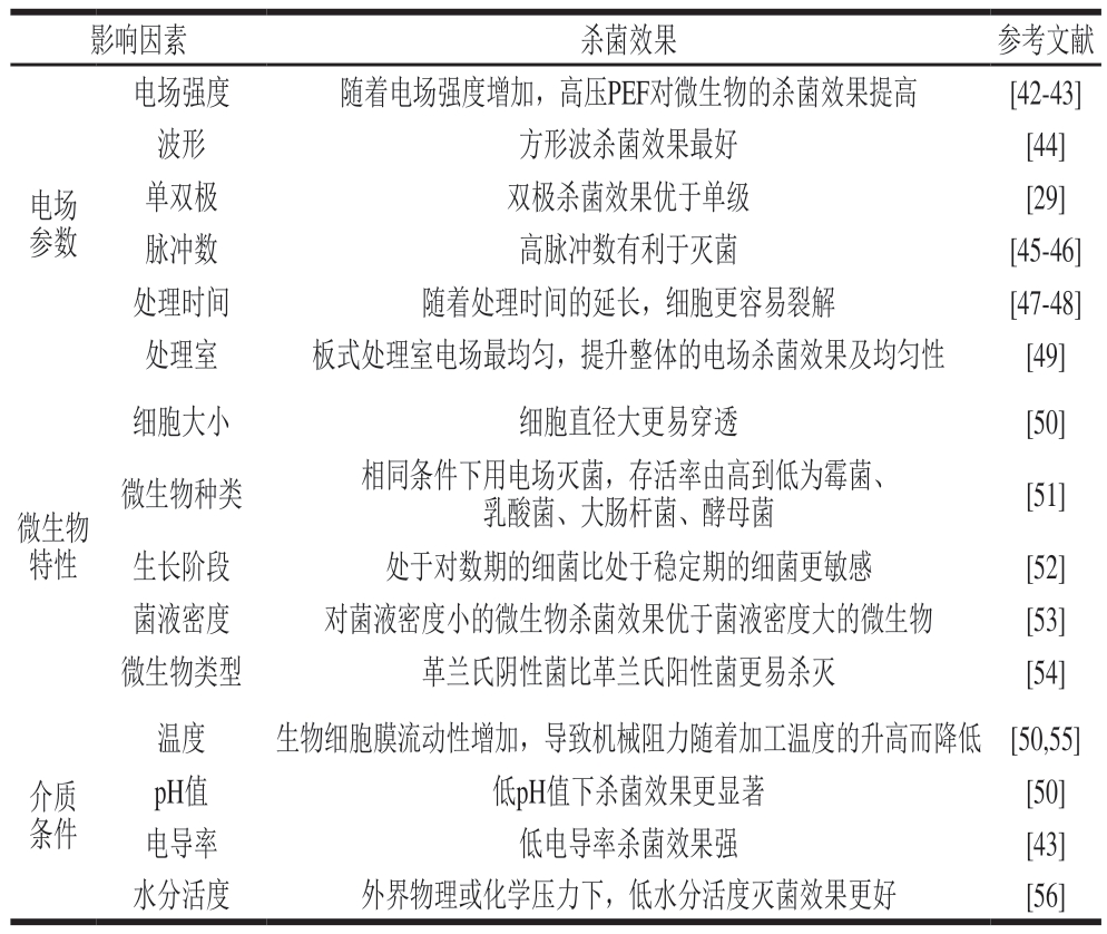 Table 2 Factors influencing the sterilization effect of pulsed electric field