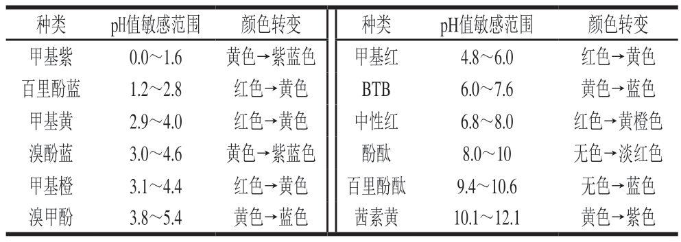 表2 可视化智能标签中常用的合成酸碱指示剂