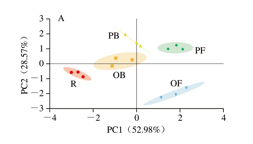结果以平均值±标准差表示。利用SPSS Statistics 25.0软件对数据进行单因素方差分析和Duncan多重范围检验分析,P<0.05表示差异显著。采用OmicShare在线平台(http://www.omicshare.com/tools)和微生信在线平台(https://www.bioinformatics.com.cn)进行主成分分析(principal component analysis,PCA)和相关性分析。