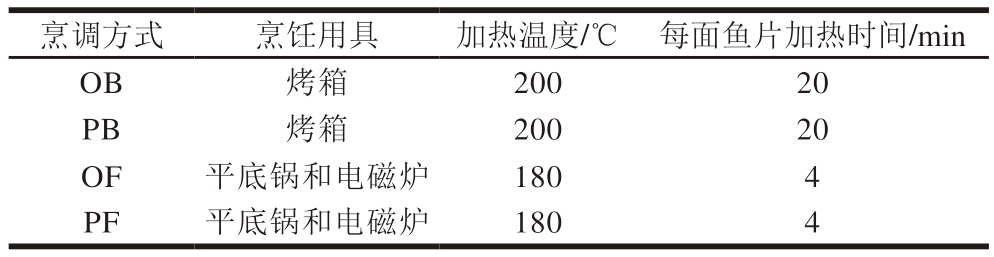 烹调方式烹饪用具加热温度/℃每面鱼片加热时间/min OB烤箱20020 PB烤箱20020 OF平底锅和电磁炉1804 PF平底锅和电磁炉1804