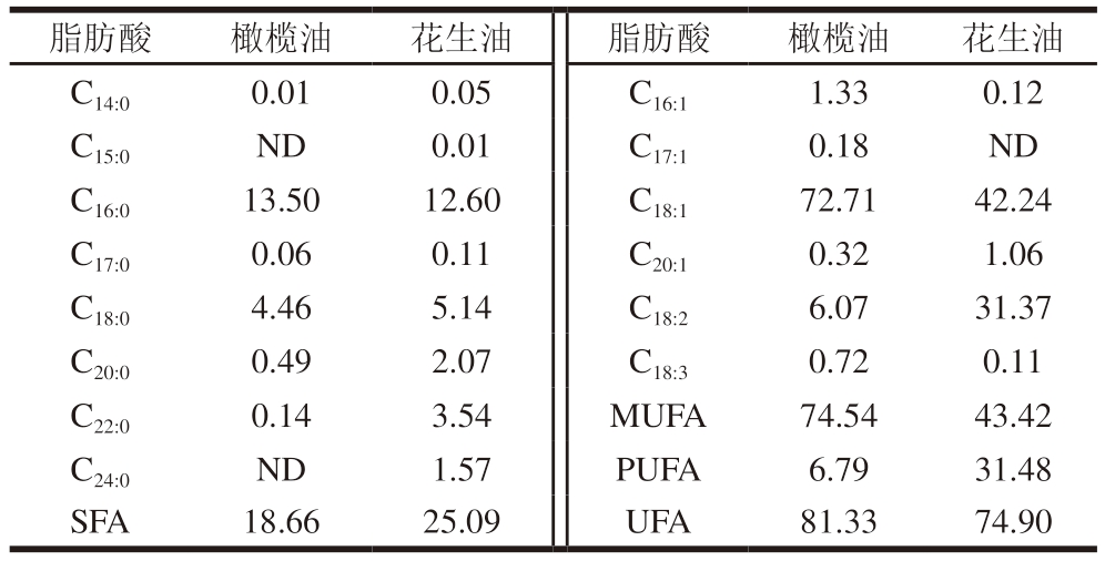 表2 橄榄油和花生油脂肪酸组成[11]