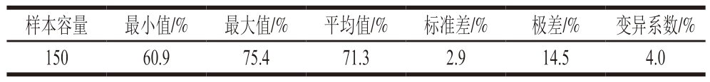 样本容量最小值/%最大值/%平均值/%标准差/%极差/%变异系数/%15060.975.471.32.914.54.0