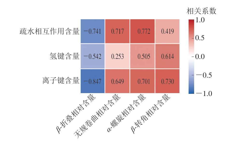 图5 鮰鱼片蛋白二级结构与分子间作用力的Pearson相关性分析